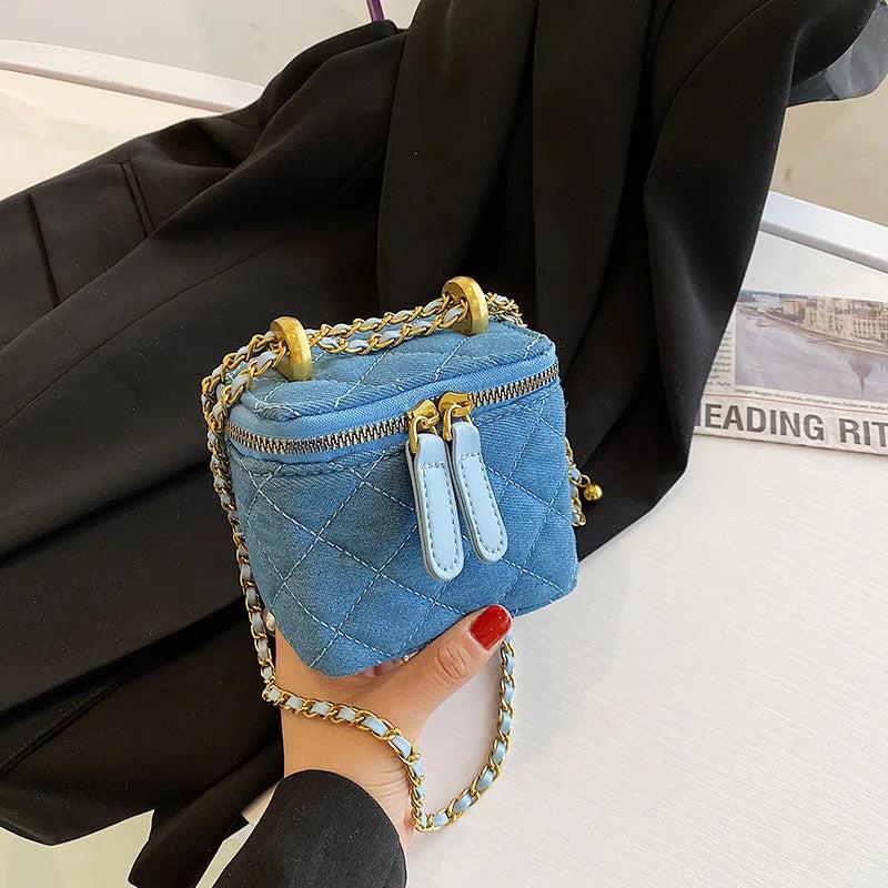 Denim Rhombus Chain Shoulder Bag Compact Portable Handbag