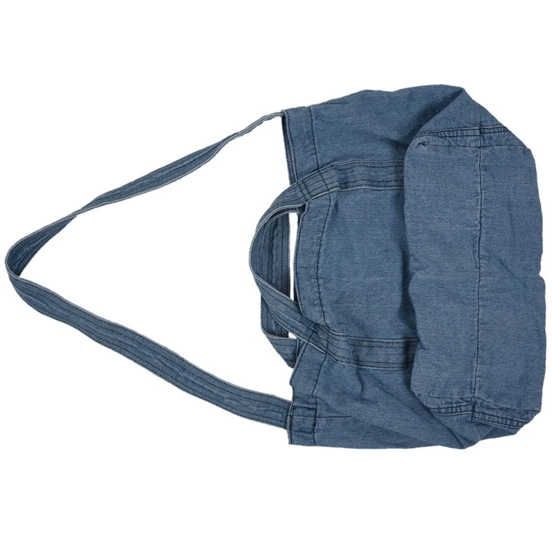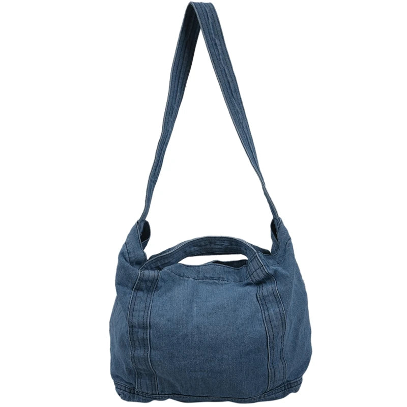 This denim slouch bag is perfect for a leisure style look, made from high-quality jean fabric. It features a Japanese messenger design that adds a touch of uniqueness to your outfit.