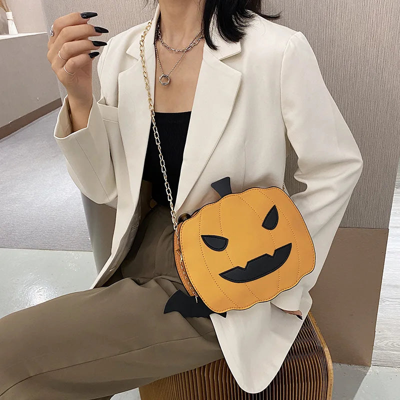 Stand out with this wild and fantastic devil pumpkin shaped handbag, perfect for Halloween or any unique occasion. Features a chain strap for a trendy look.
