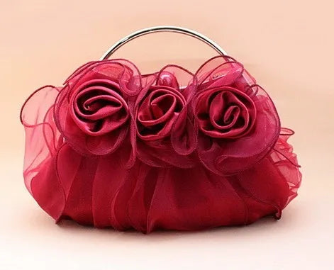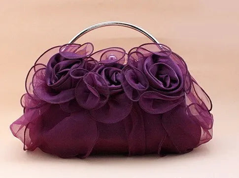 Diamond Satin Flower Evening Clutch Bag with Two Flowers Appliques
