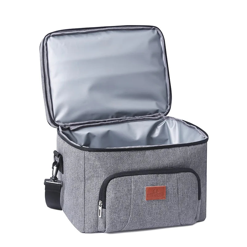 This double deck lunch cooler bag is perfect for picnics, work, school, or any outdoor activities. It is leakproof, thermal insulated, and features a shoulder strap for easy carrying.