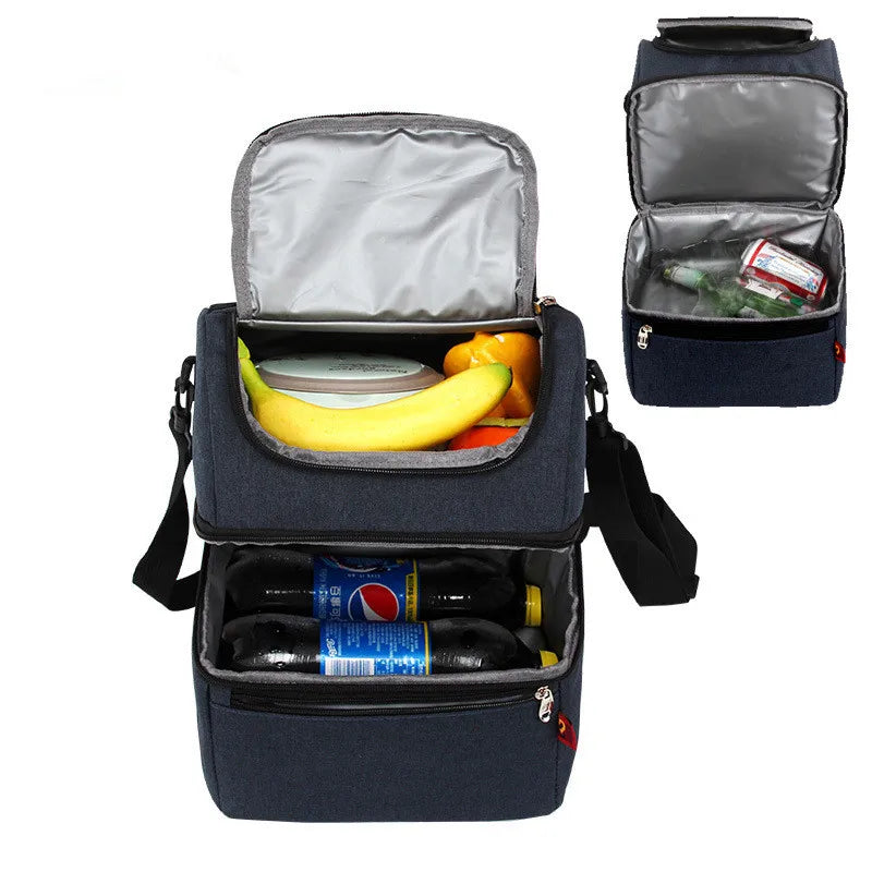 This lunch bag is designed to keep your food fresh and cool with its double foldable ice pack. It is waterproof, leak-proof, and insulated to maintain the temperature of your meal. A versatile option for picnics, work, or school.