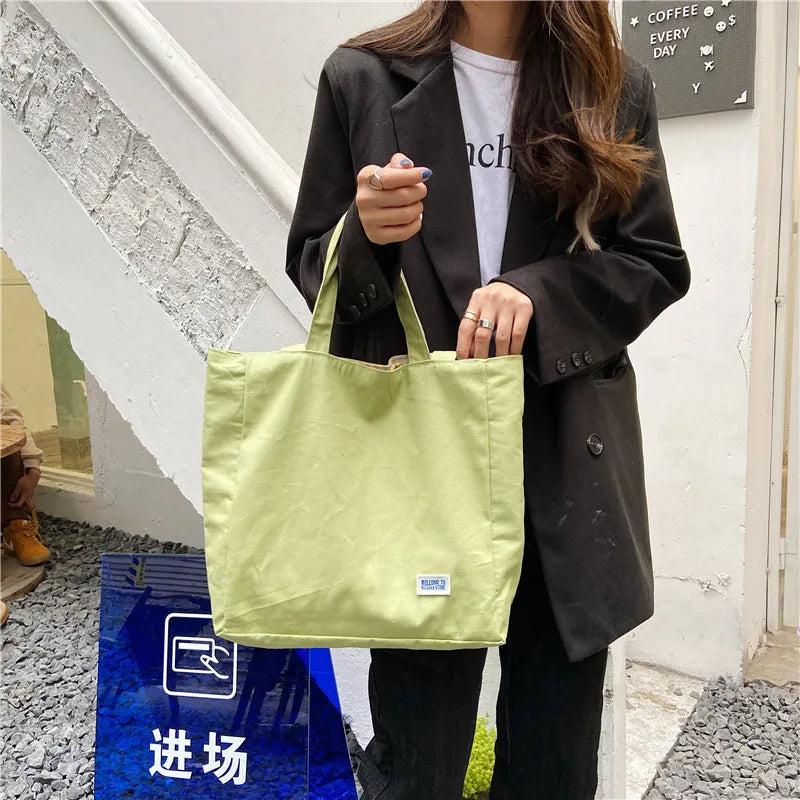 This large capacity shoulder bag is perfect for students and leisure use. Made of durable canvas, it features a stylish lattice design and is double-sided usable.