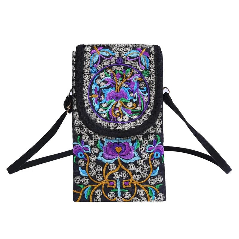 Embroidered Crossbody Cell Phone Bag Shoulder Wallet Purse Handbag