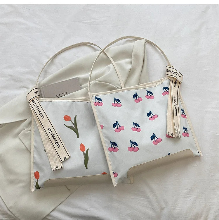 Embroidered Flower Shoulder Bag Large Capacity Tote Bags