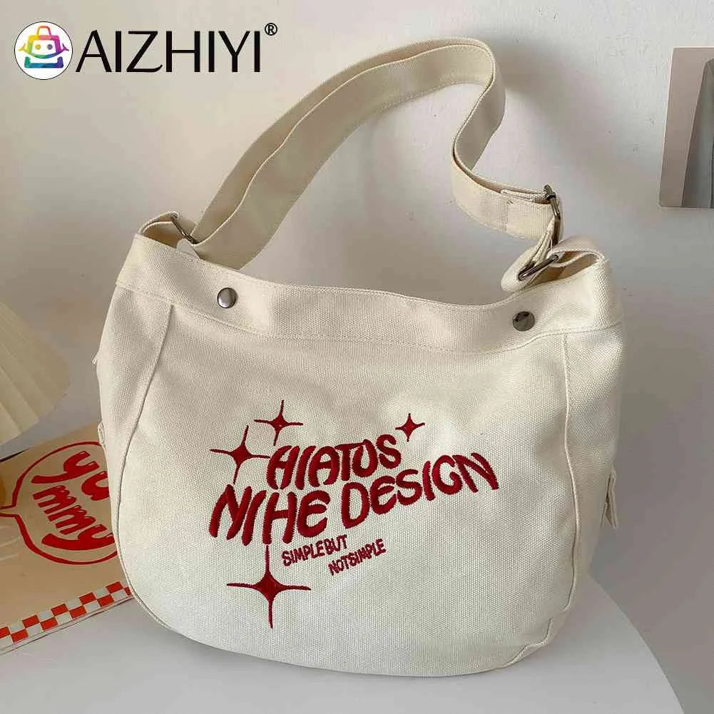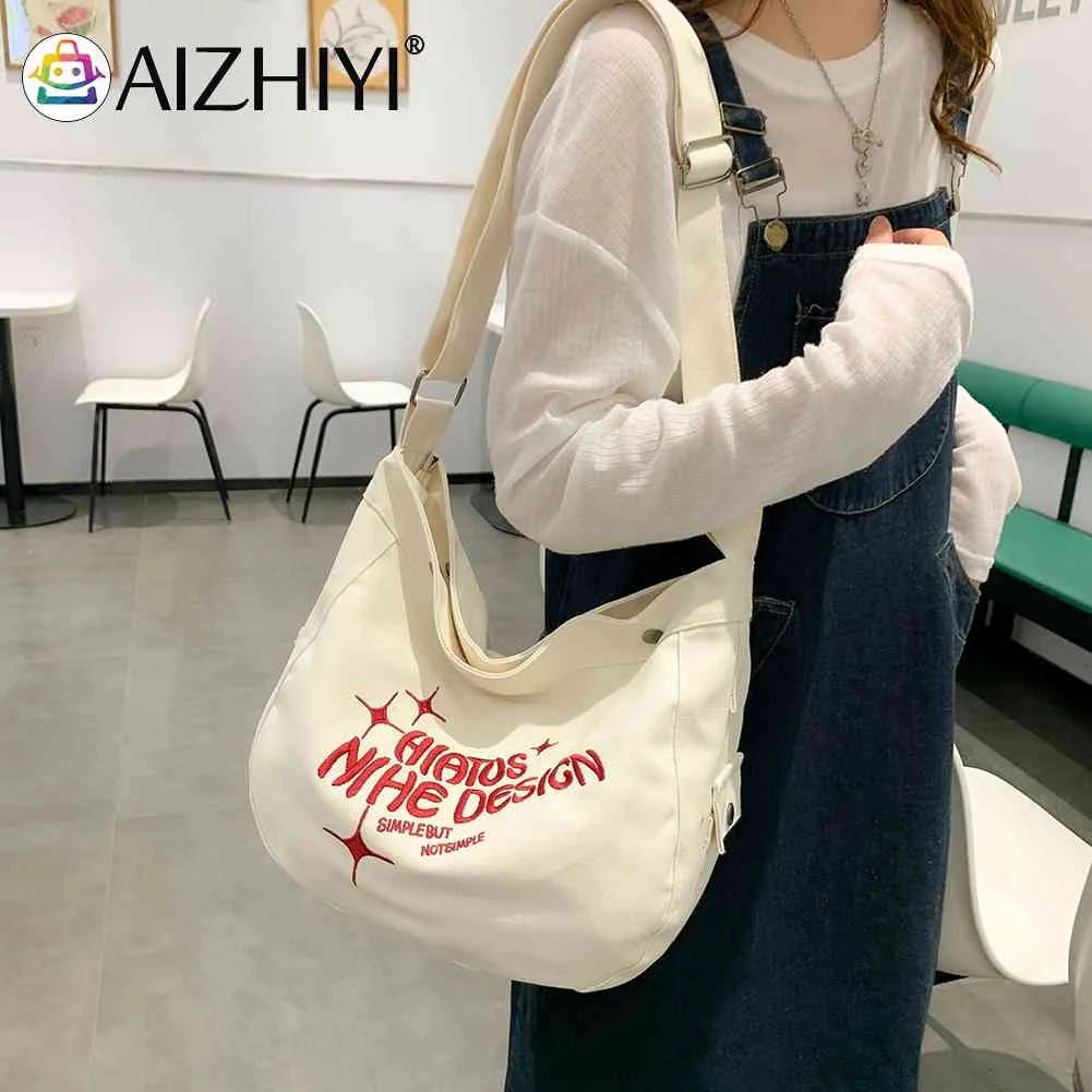 Embroidered Letters Canvas Messenger Bag Large Capacity