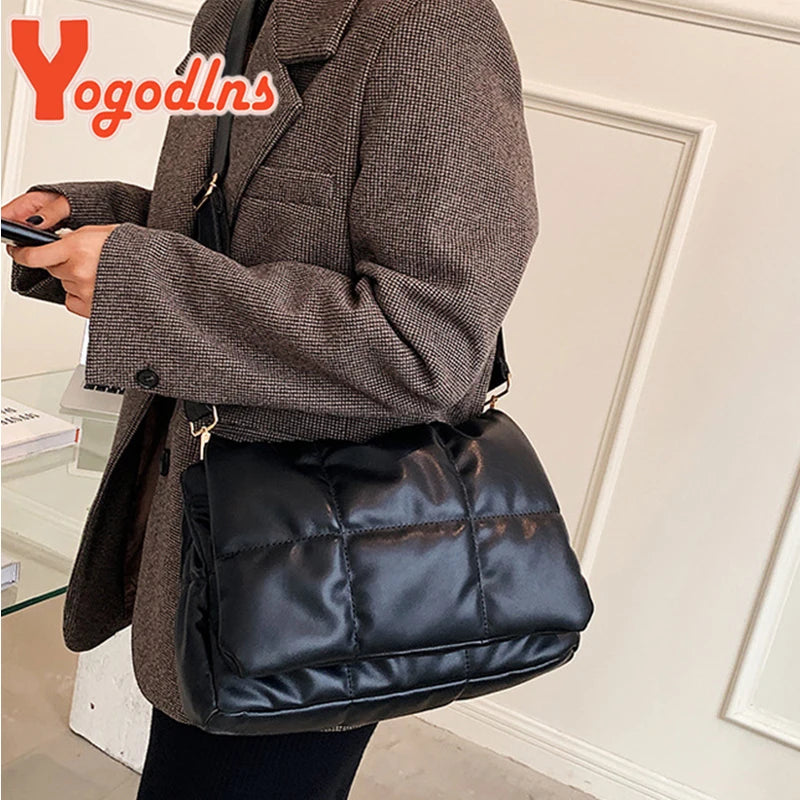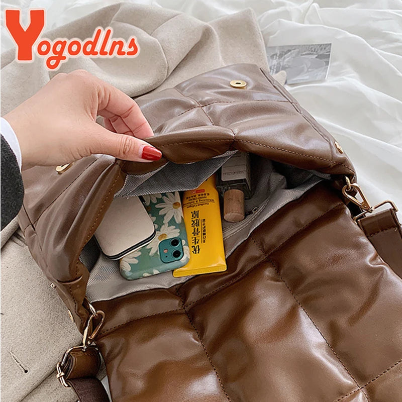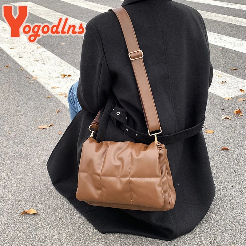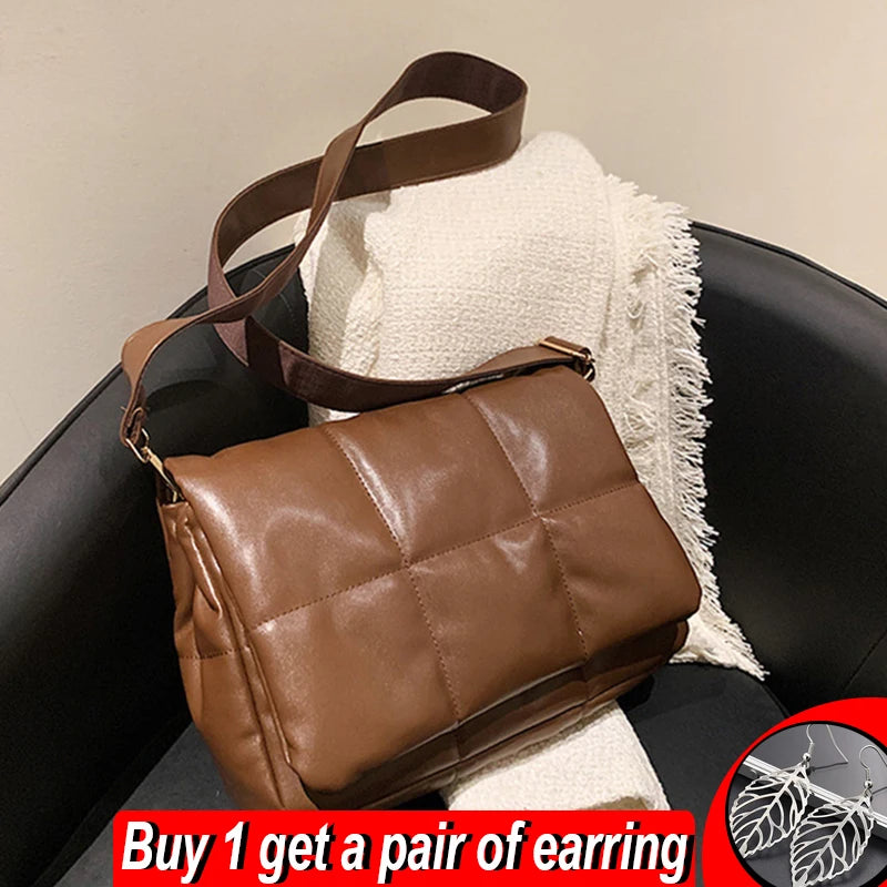Embroidered Thread Shoulder Bag Soft Leather Messenger Flap Square Handbag