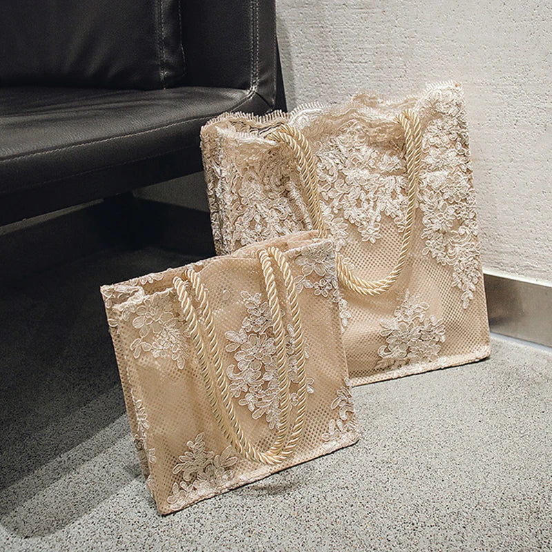 Embroidery Hollow Shoulder Bag Lace Mesh Tote Bag Ladies Handbags
