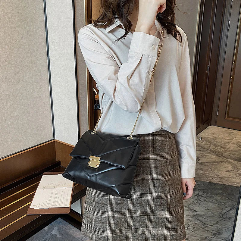 Embroidery Thread Square Bag Chain Pu Shoulder Messenger Crossbody Bag