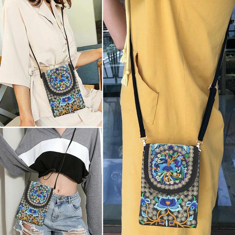 Ethnic Style Crossbody Cell Phone Bag Embroidered Canvas Purse