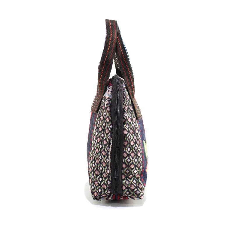 Stay stylish with this ethnic-inspired canvas handbag featuring animal patterns. Perfect for carrying your essentials with a touch of elegance.