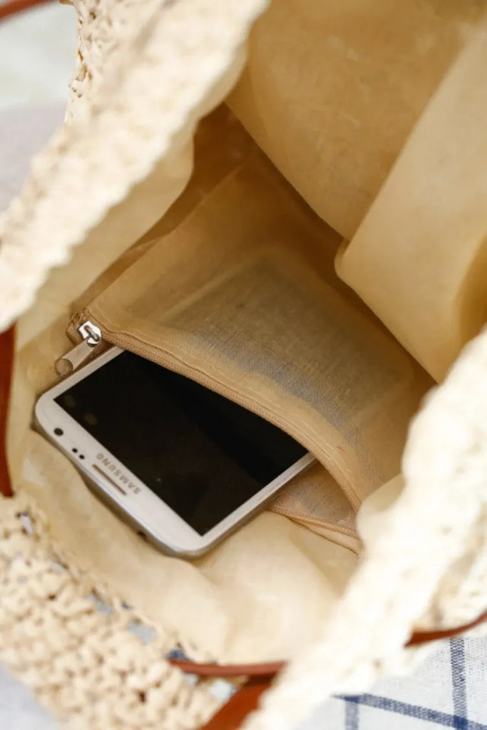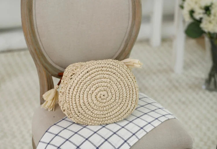 This stylish shoulder bag is perfect for a beach vacation with its straw material and tassel design. It offers a spacious interior to carry all your essentials for a day at the beach.