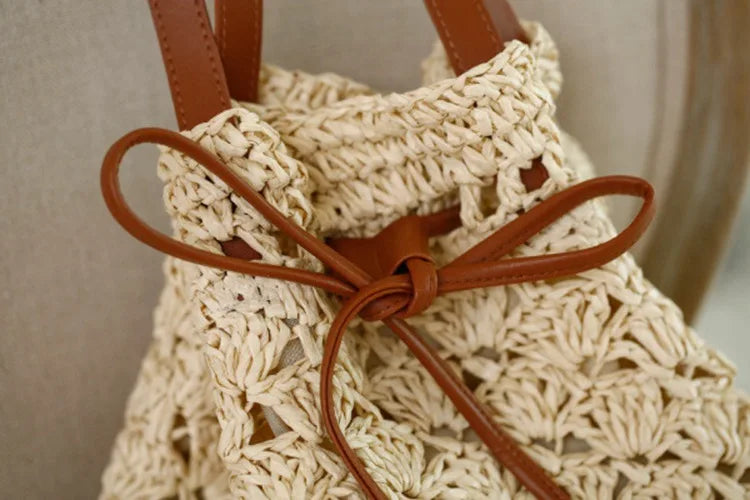 Europe and US Straw Tassel Bucket Bag, Beach Vacation Handbag