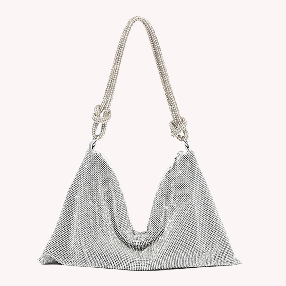 Evening Clutch Bag Silver Crystal Dinner Party Wedding Purses Handbag