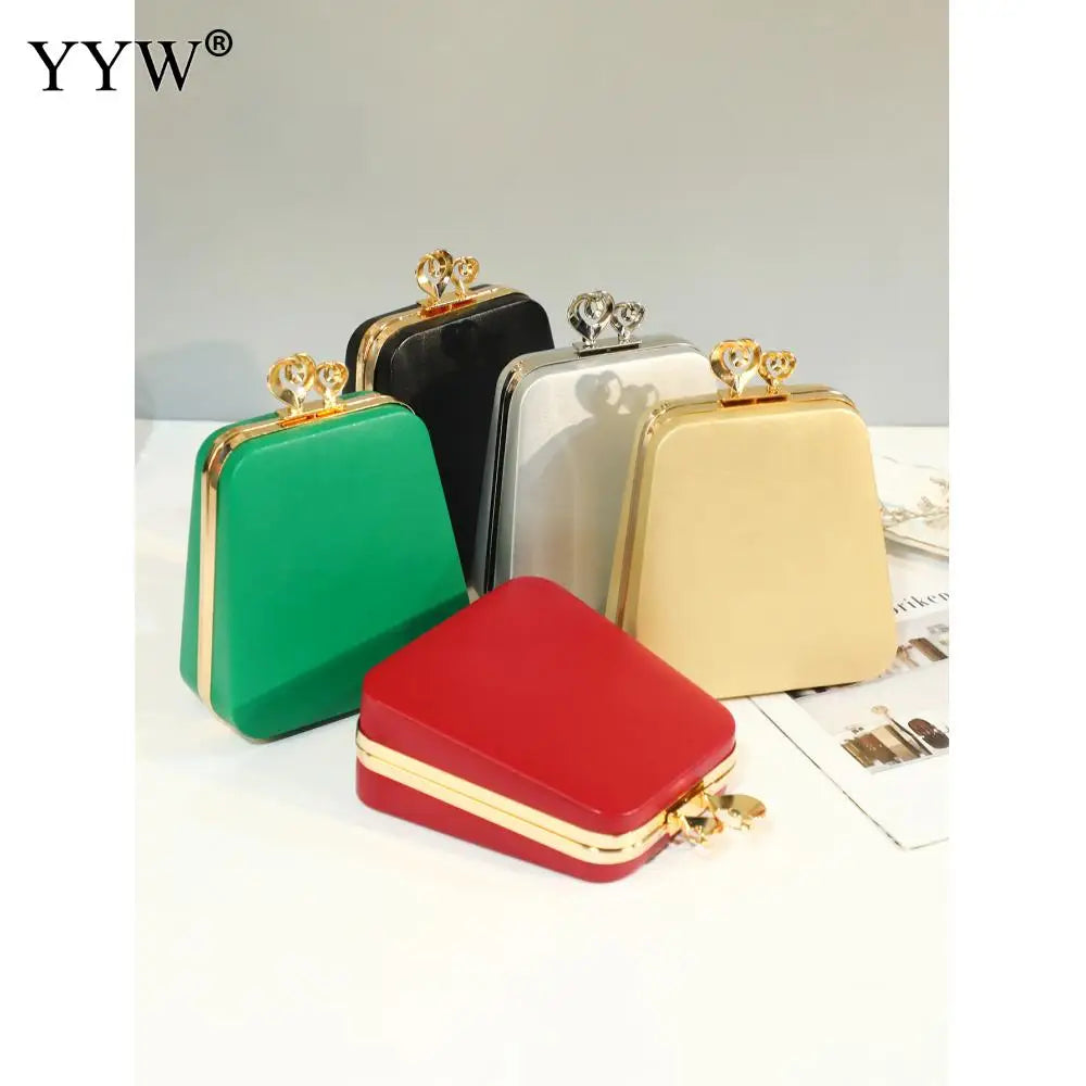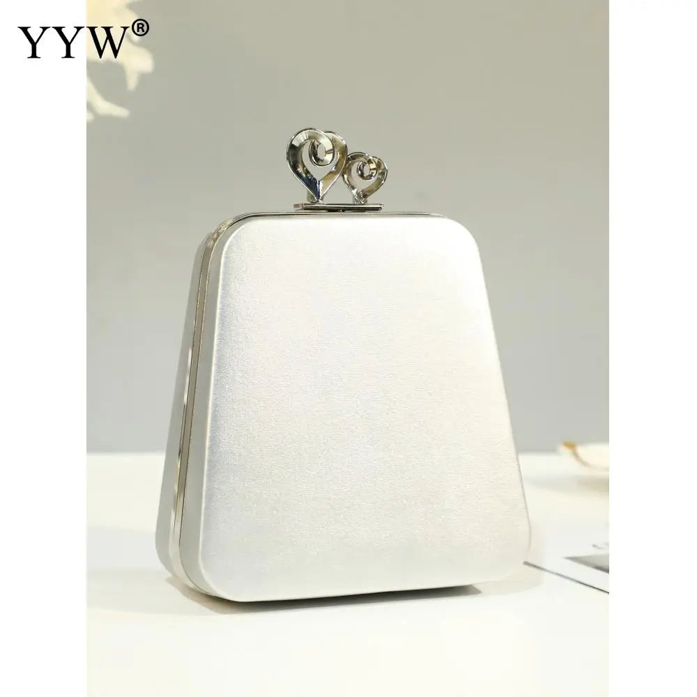 Evening Leather Clutch Purse with Chain Sling Shoulder Strap