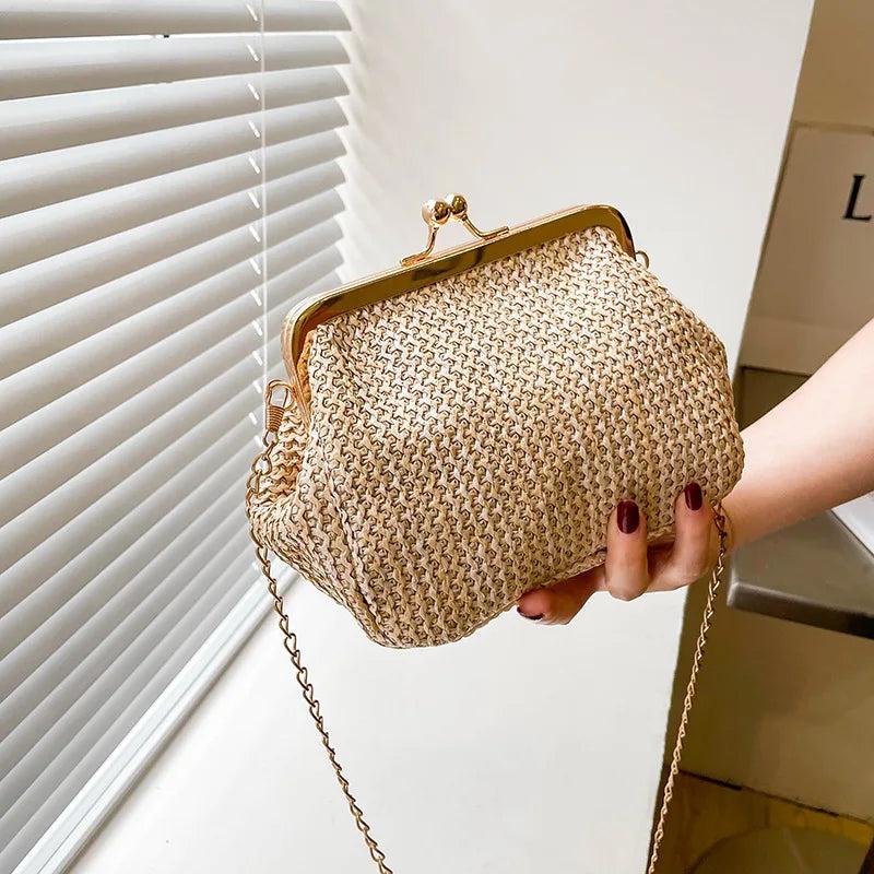 Stay trendy with this autumn straw handbag, perfect for any occasion. The mini shell clip shoulder bag features an ethnic wind design, ideal for a single shoulder or crossbody style.