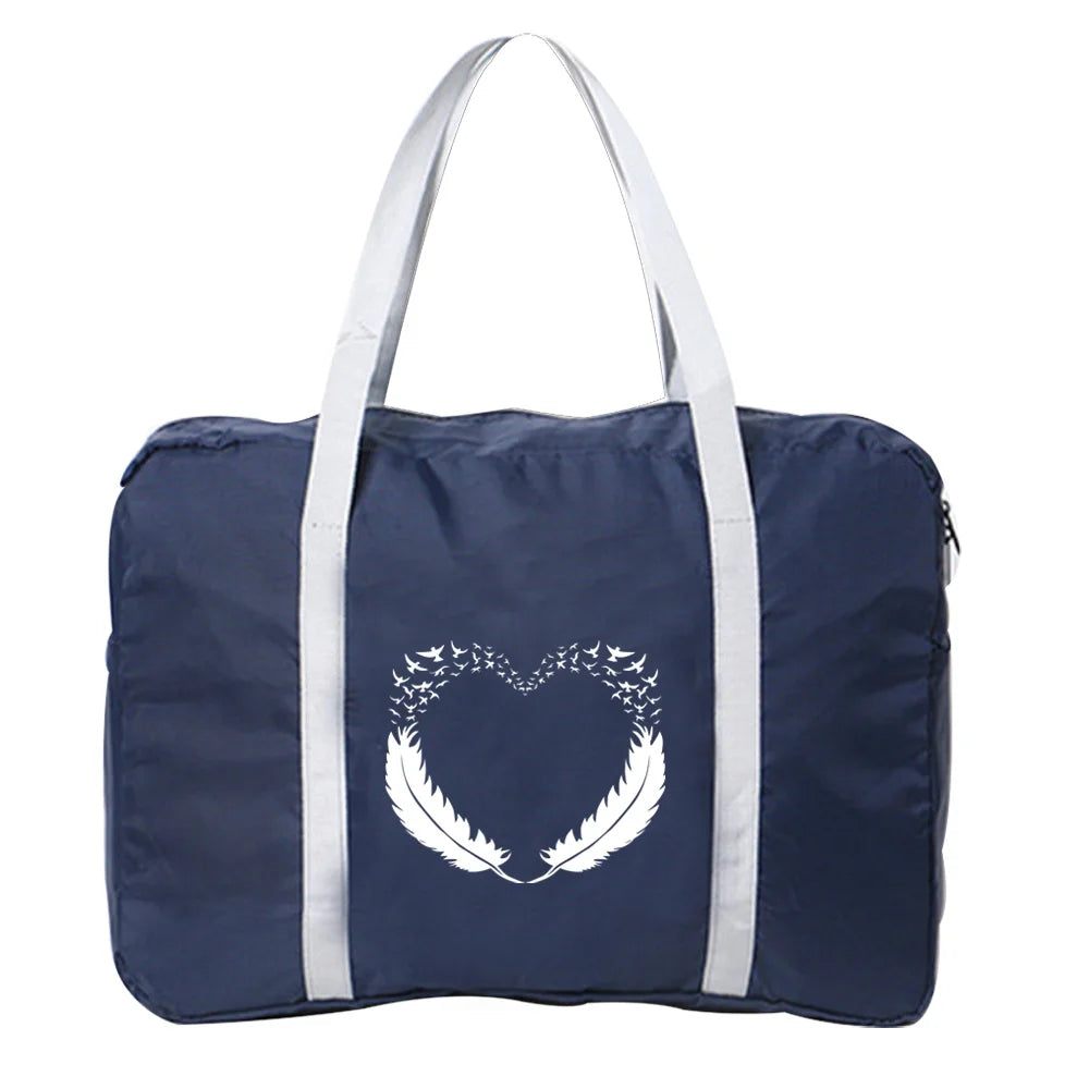 Feather Print Travel Bag Lightweight Foldable Tote Luggage Unisex Handbags