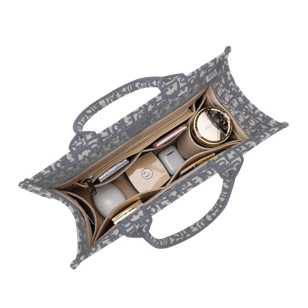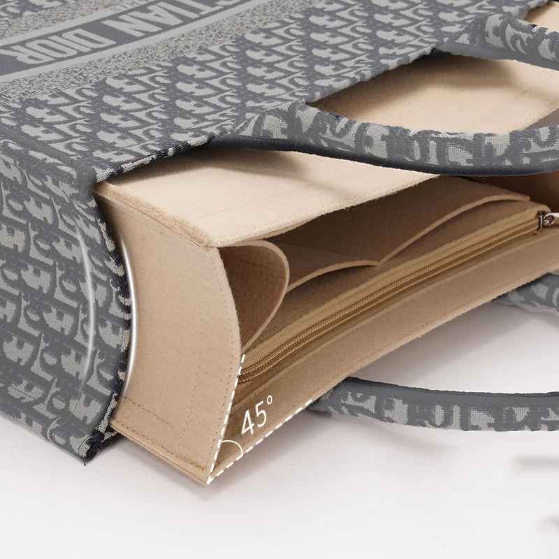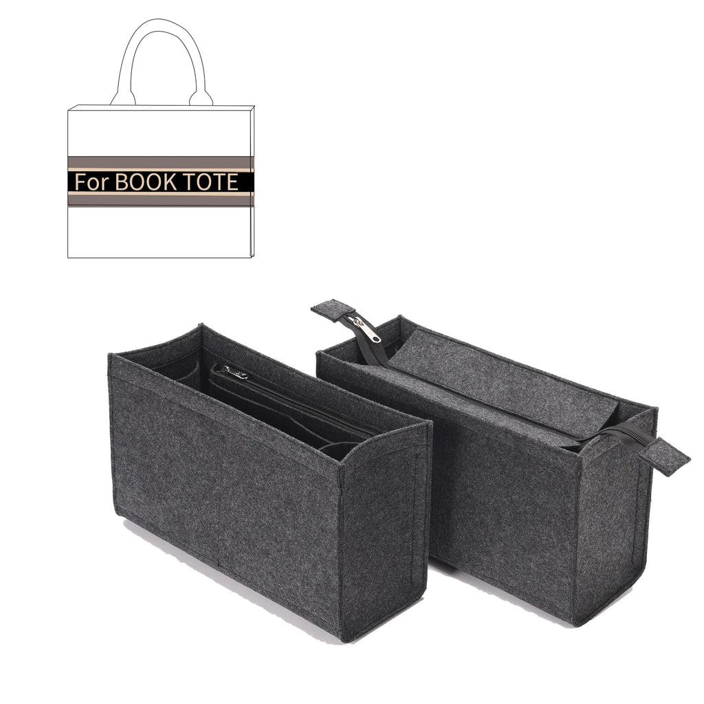 Keep your handbag or tote organized and shaped with this felt organizer insert featuring a zipper. Perfect for Book Totes and other large bags.