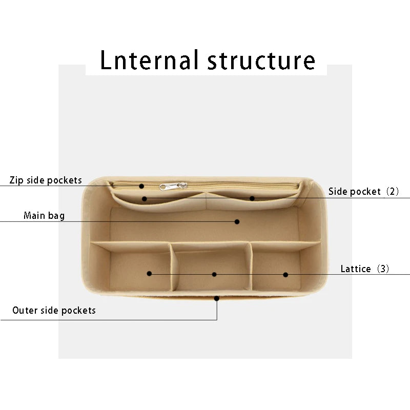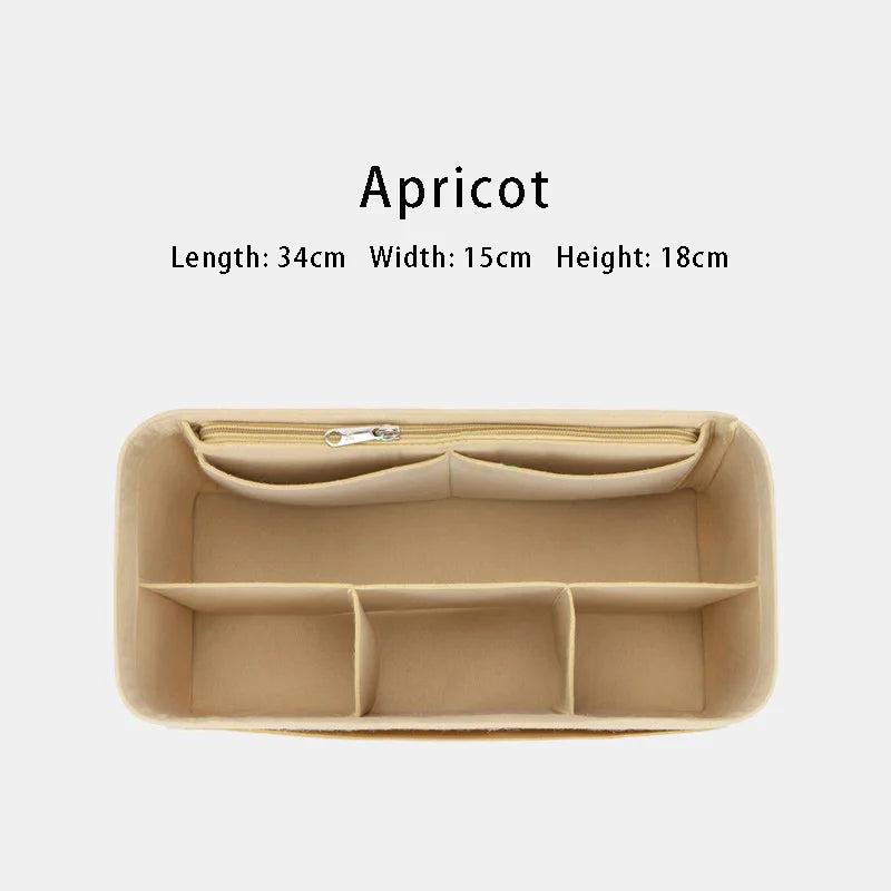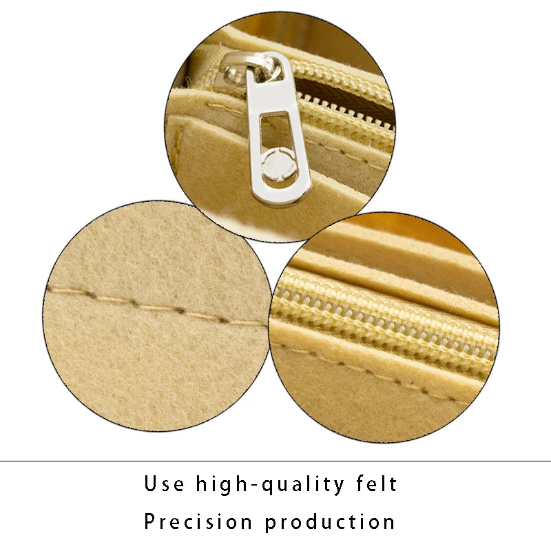 Keep your tote handbag organized with this felt cloth cosmetic bag insert. Designed to serve as a base shaper and storage solution for your makeup and cosmetic items.