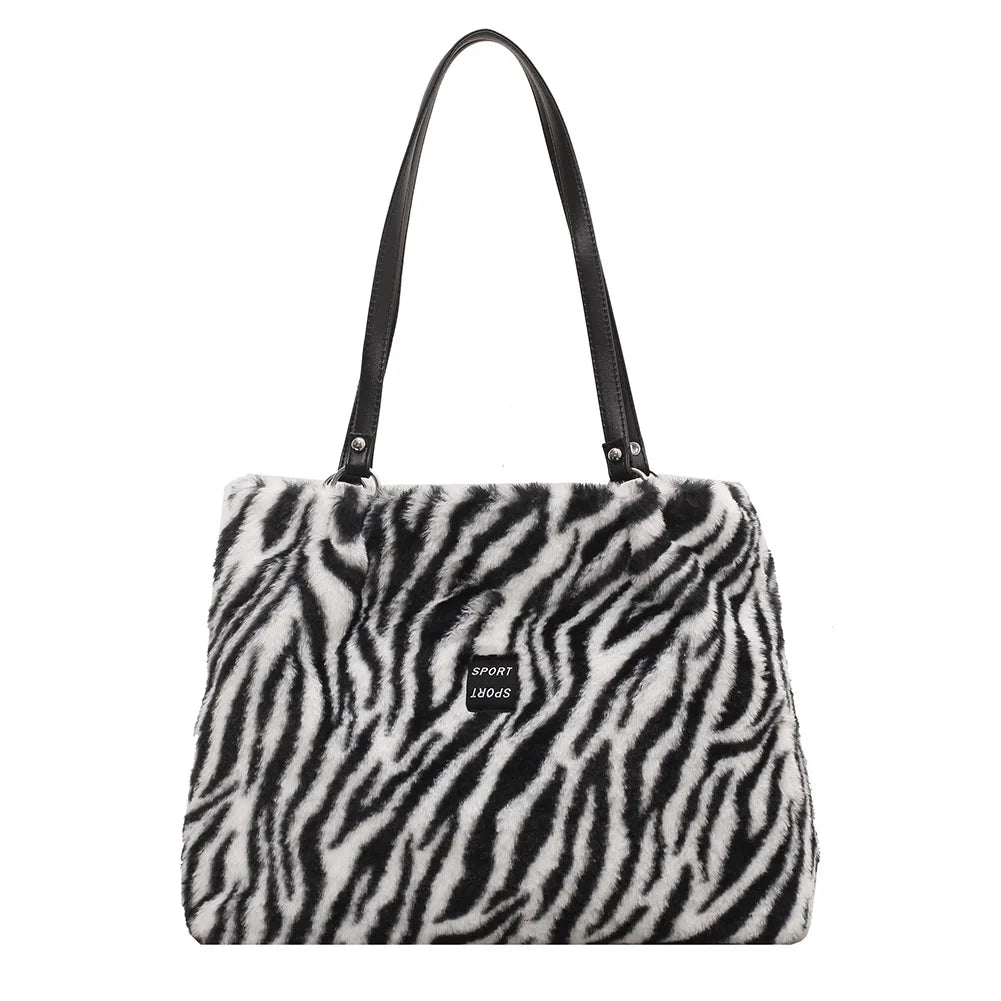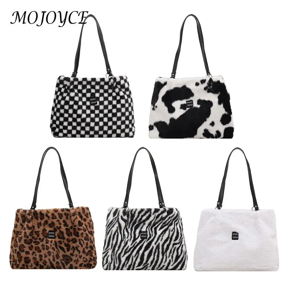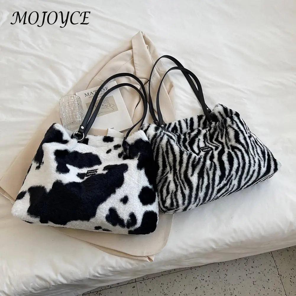 Female Handbag Soft Warm Winter Ladies Cow Pattern Handbags