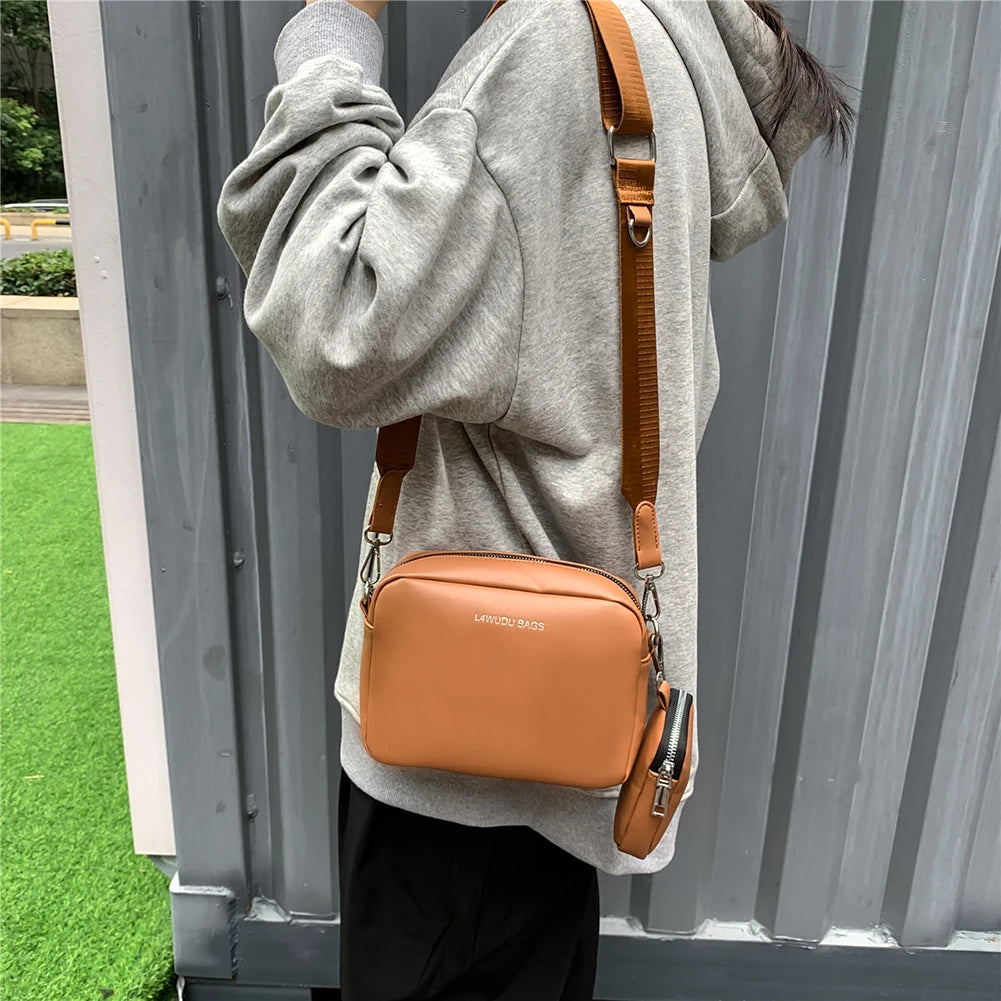 Female Pu Handbags Camera Headphone Pouch 2 in 1 Crossbody Handbags