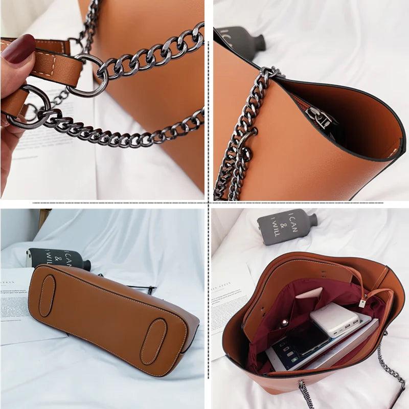 Female PU Handle Bag Solid Chain Shoulder Bag