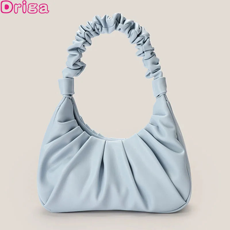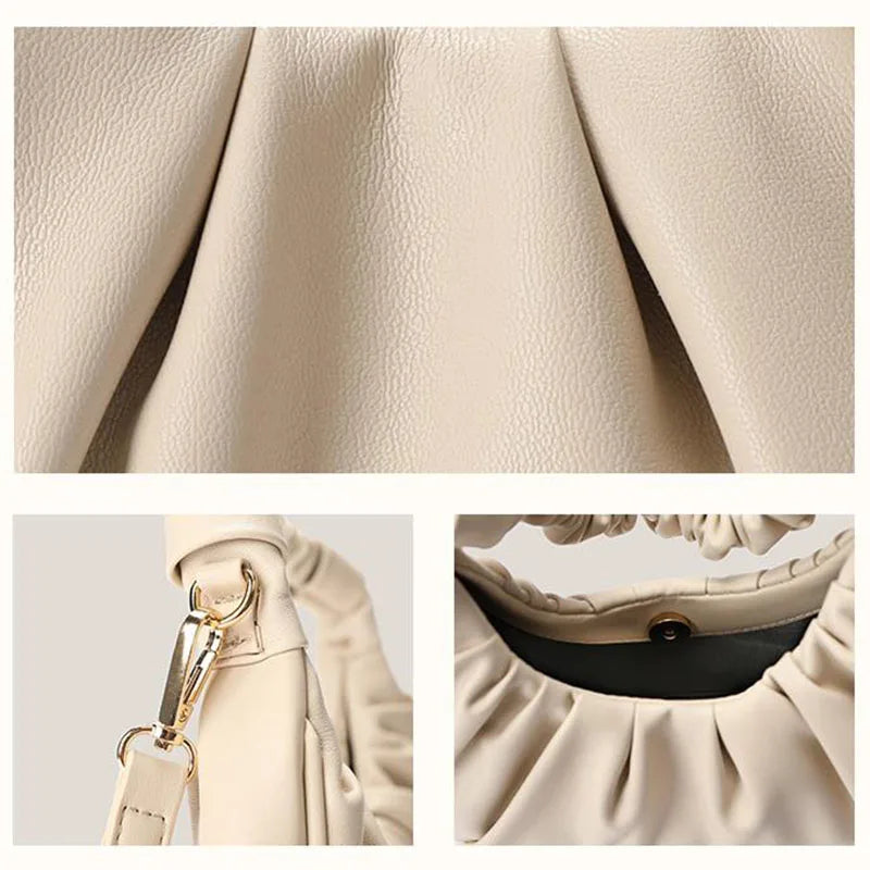 Female Underarm Bag Cloud Fold Handbags Messenger Summer Pu Leather Solid Bag
