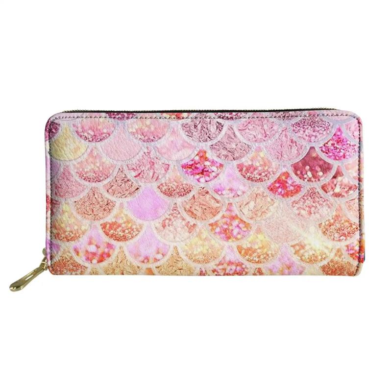 This long wallet features a fish scales pattern art design, sparkling with light, perfect for girls. It can hold cards, cash, and phone in style.