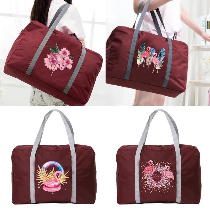 Flamingo Print Travel Bag Unisex Foldable Handbags Organizers Large Capacity