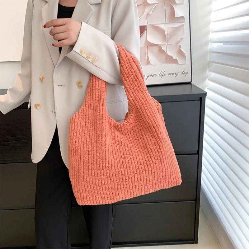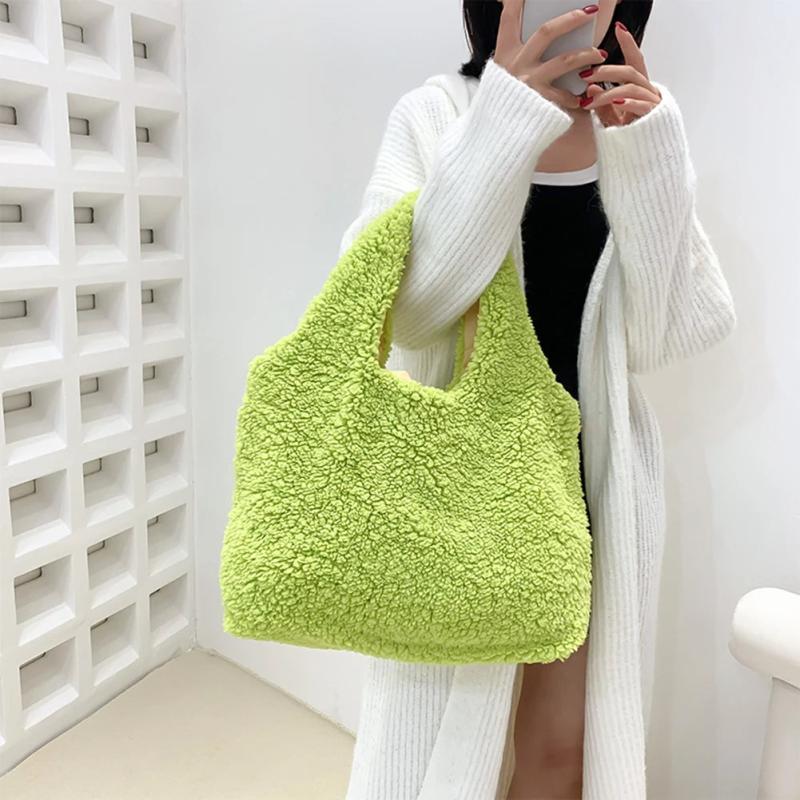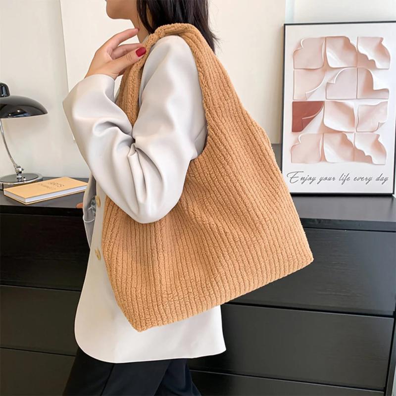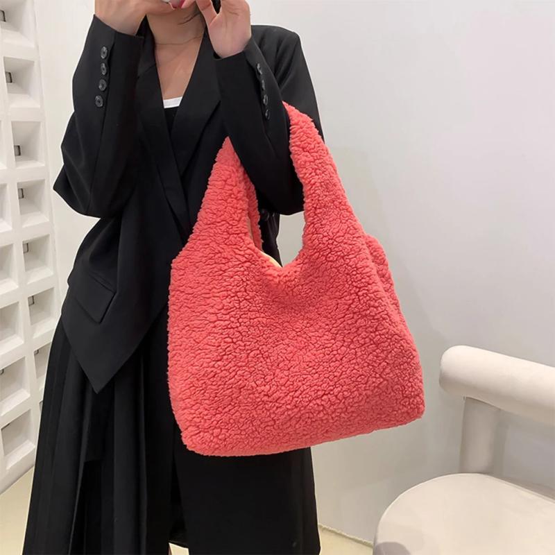 This shoulder bag is perfect for autumn and winter seasons. Made of soft plush material, it is large-capacity and portable, ideal for shopping and travel.