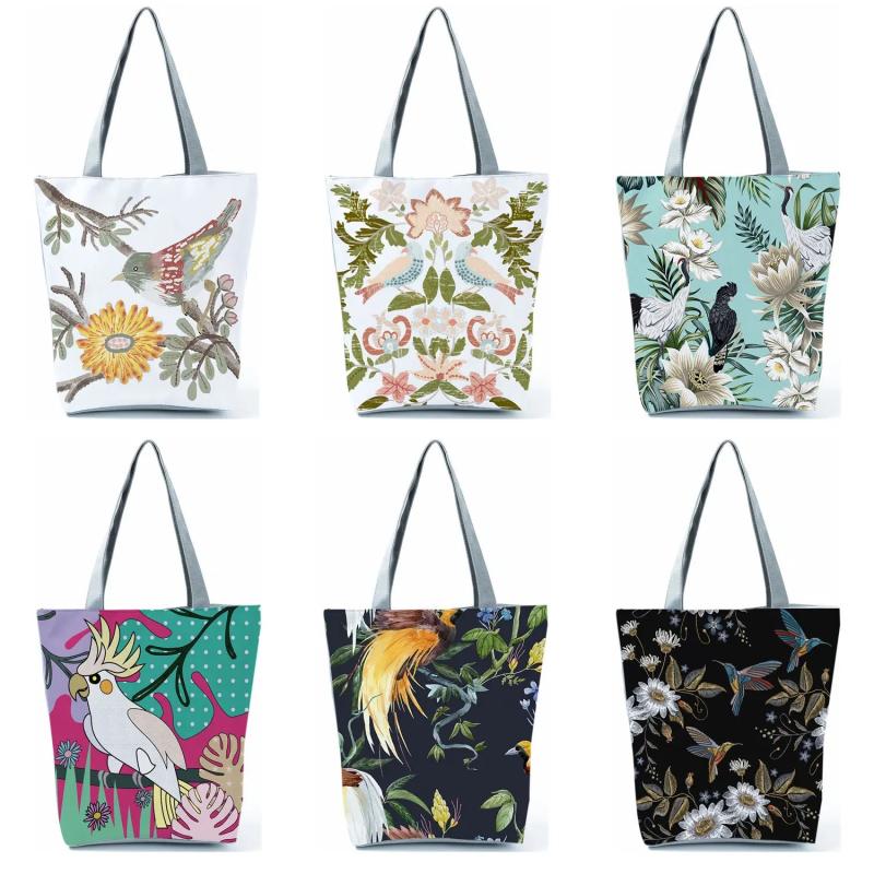Floral Butterfly Printed Handbag Shoulder Bag High Capacity Tote