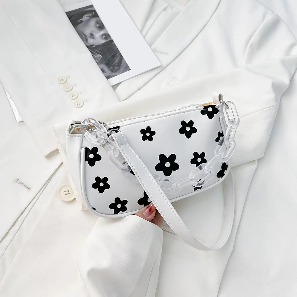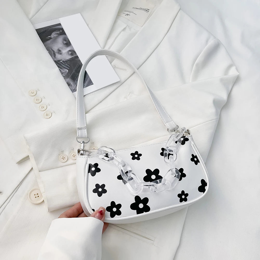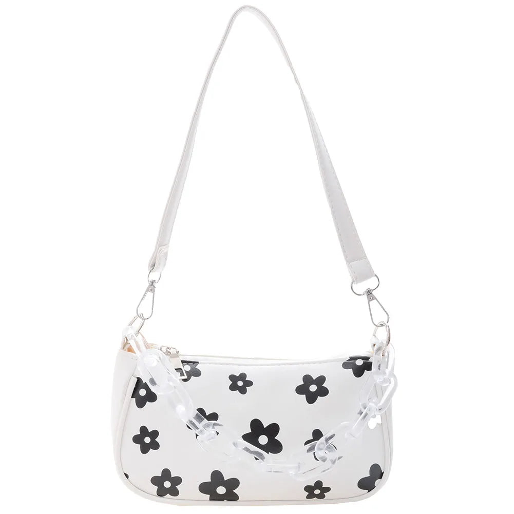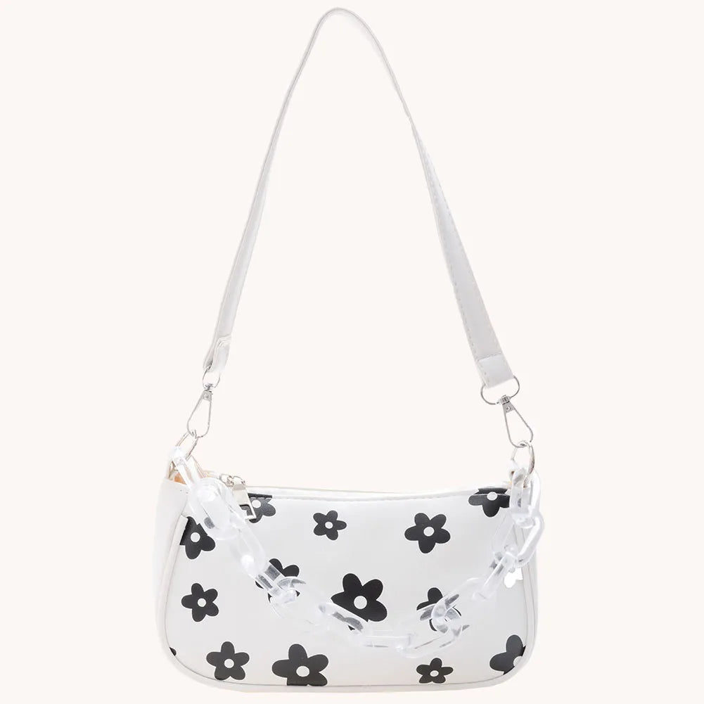 This casual handbag features a lovely floral pattern, perfect for any occasion. It is designed with a chain shoulder strap and can be worn as an underarm pouch. Ideal for outdoor activities and daily use.