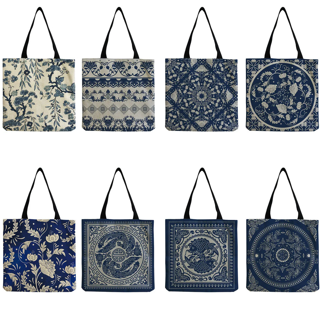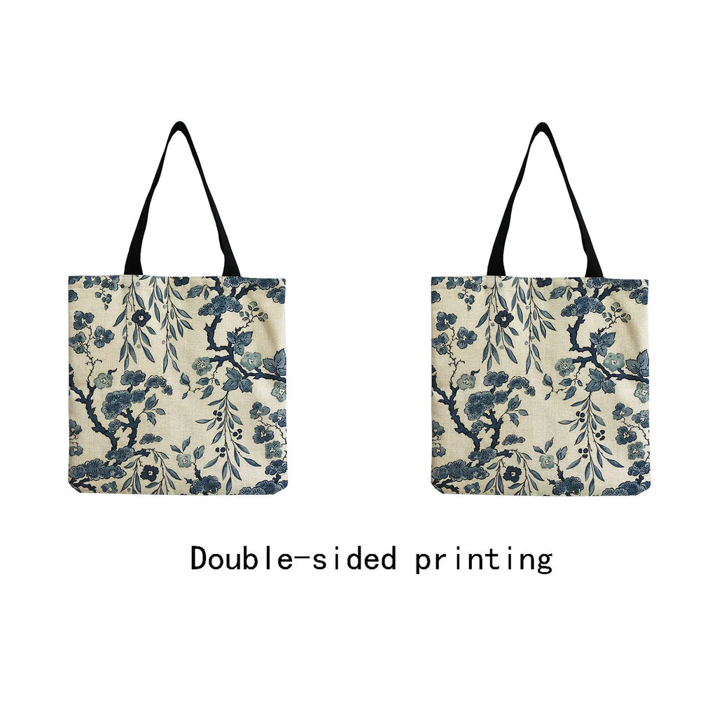 Floral Porcelain Geometry Shoulder Bag Ladies Casual Book Tote