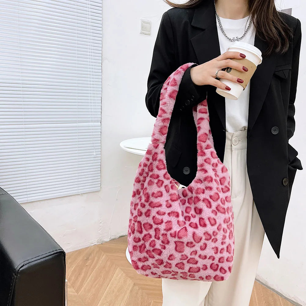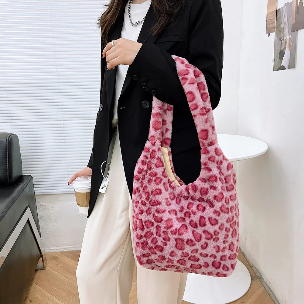 Stay stylish and cozy with this casual plush shoulder bag featuring a flower animal pattern. Perfect for winter outings or shopping trips.