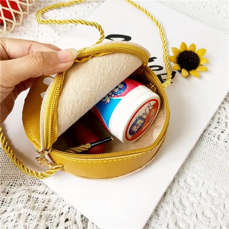 This adorable small crossbody bag is perfect for little girls. It features a cute flower design, ideal for carrying small items like coins or small toys. The adjustable strap makes it easy for kids to wear.