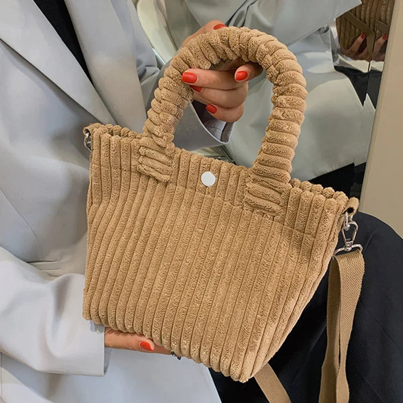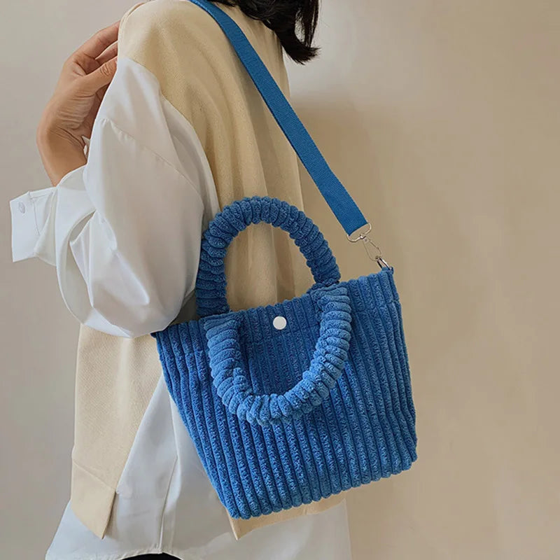 Fluffy Striped Shoulder Bag - Candy Casual Zipper Handbag