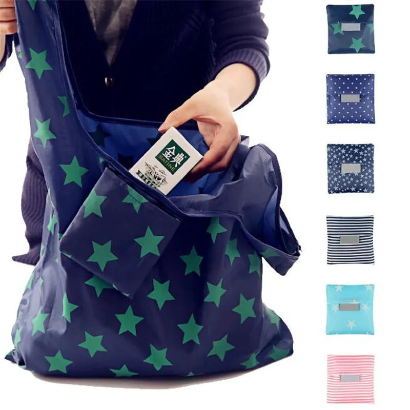 This convenient large-capacity storage bag is perfect for shopping trips and everyday use. It folds neatly into a pouch for easy carrying.