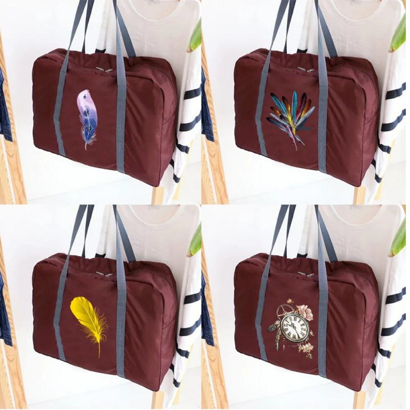Foldable Travel Bag Feather Print Large Capacity Portable Luggage Organizer
