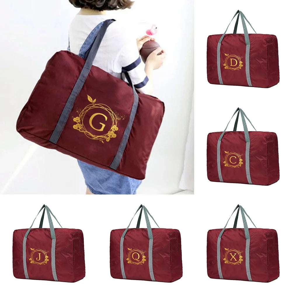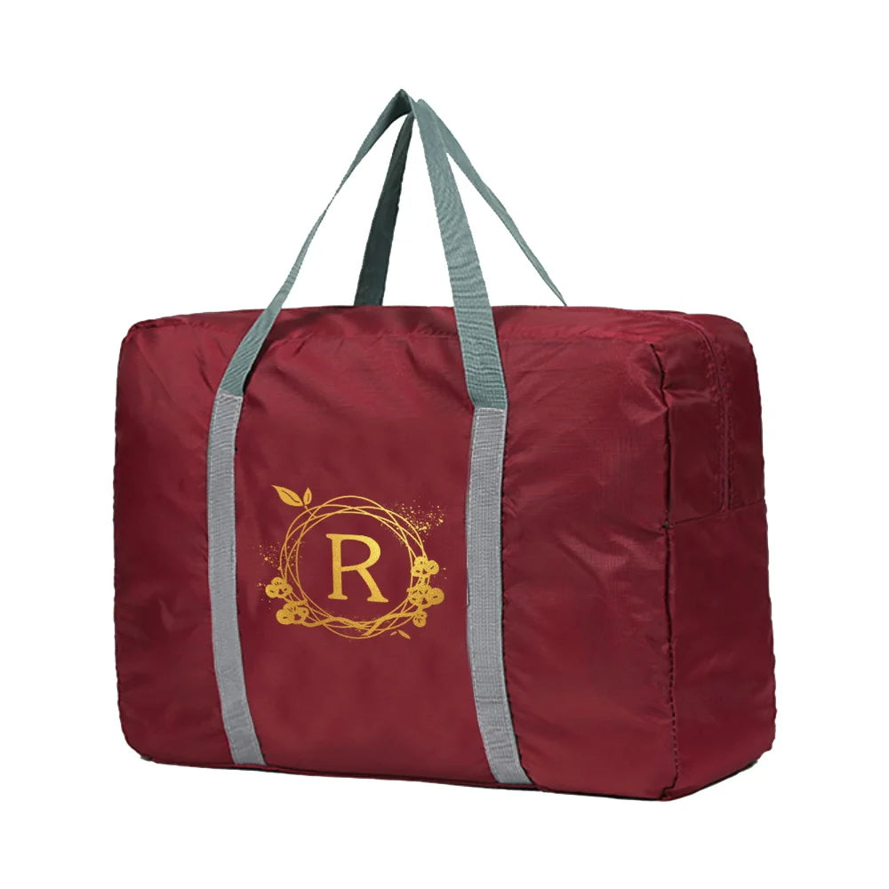 Foldable Travel Bag Large Capacity Portable Luggage Wreath Letter Name Pattern