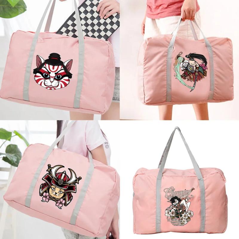 This foldable travel bag is perfect for carrying your essentials while on the go. The water-proof material ensures your belongings stay dry. Featuring a unique Samurai Series print, this bag is both stylish and functional.