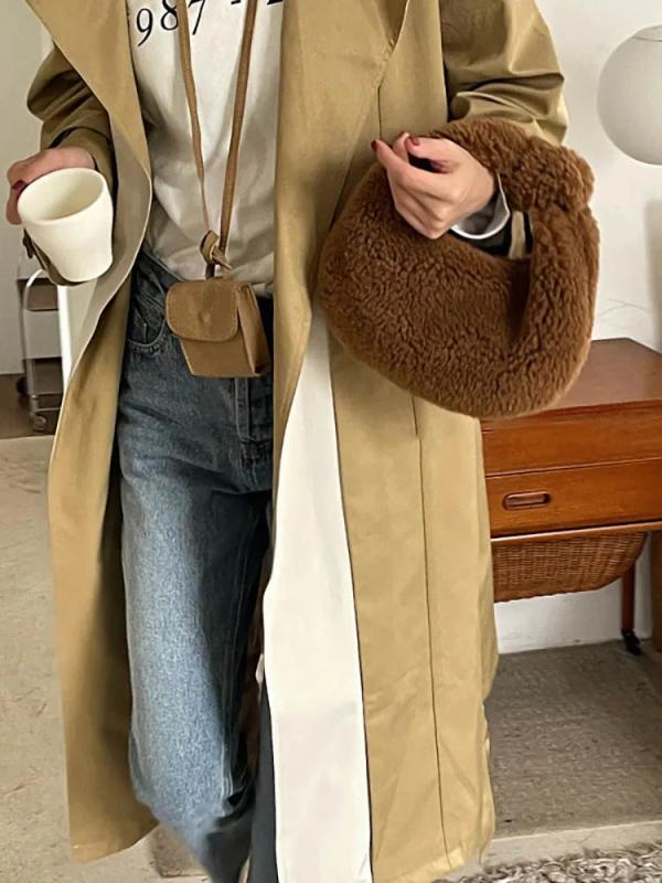 Stay warm and stylish with this lamb wool handbag perfect for winter. The solid design and knotted details make it fashionable and functional.