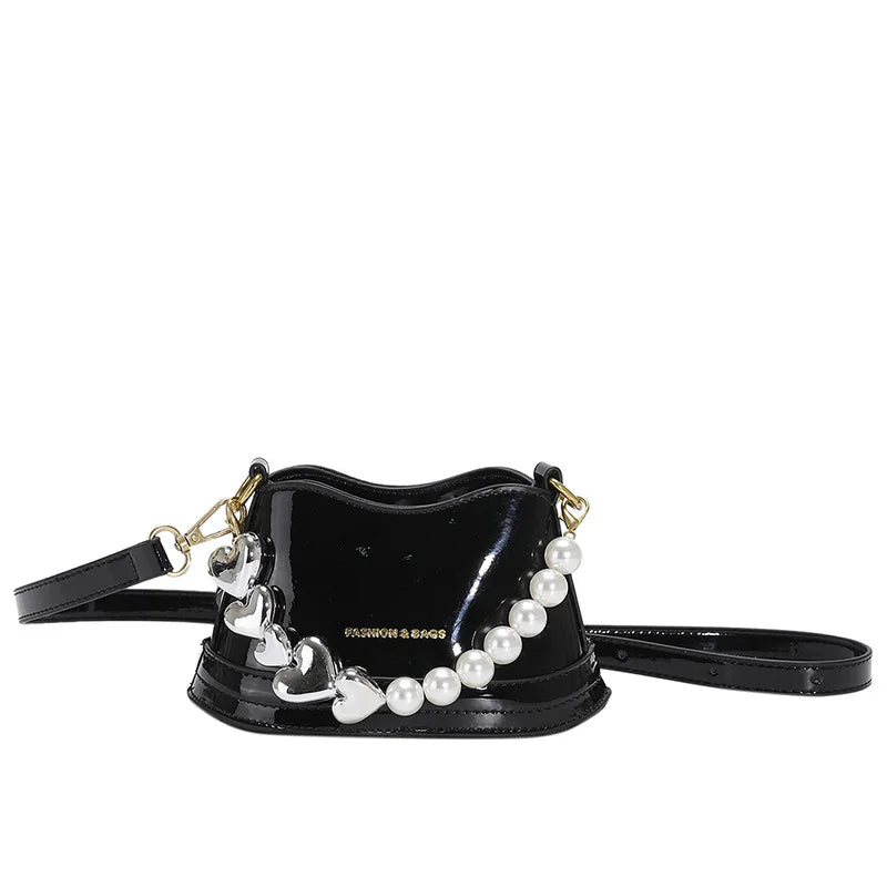Elevate your style with this elegant French Diamond Square Bag. It features a pearl chain mini bag design that adds a touch of sophistication to your look.