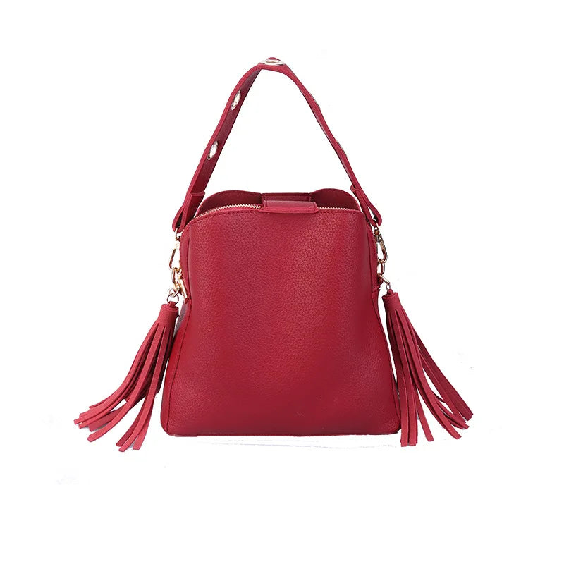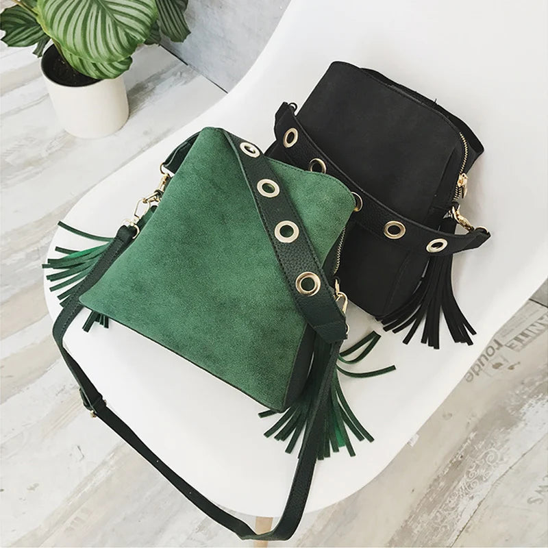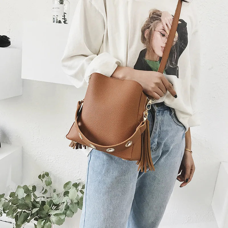 Frosted Leather Bucket Bag Retro Messenger Shoulder Handbag