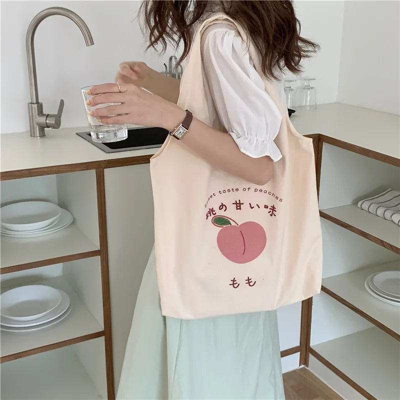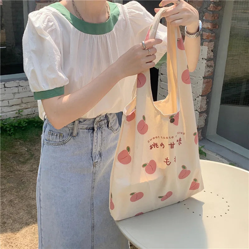 Fruit Pattern Canvas Shoulder Bag Tote