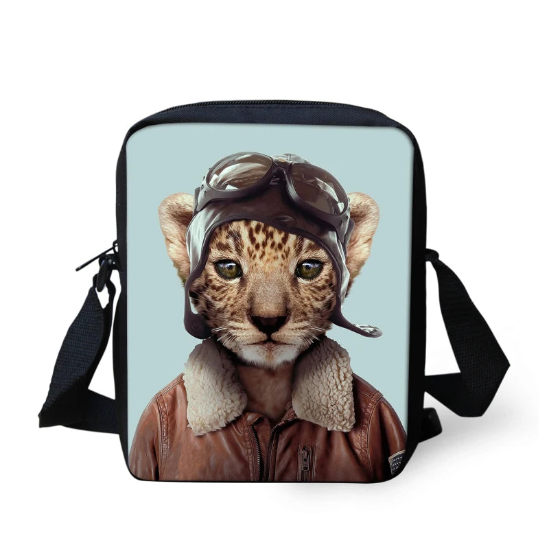 Funny Animal Print Messenger Bag for Students Casual Cross-body Satchel Handbag