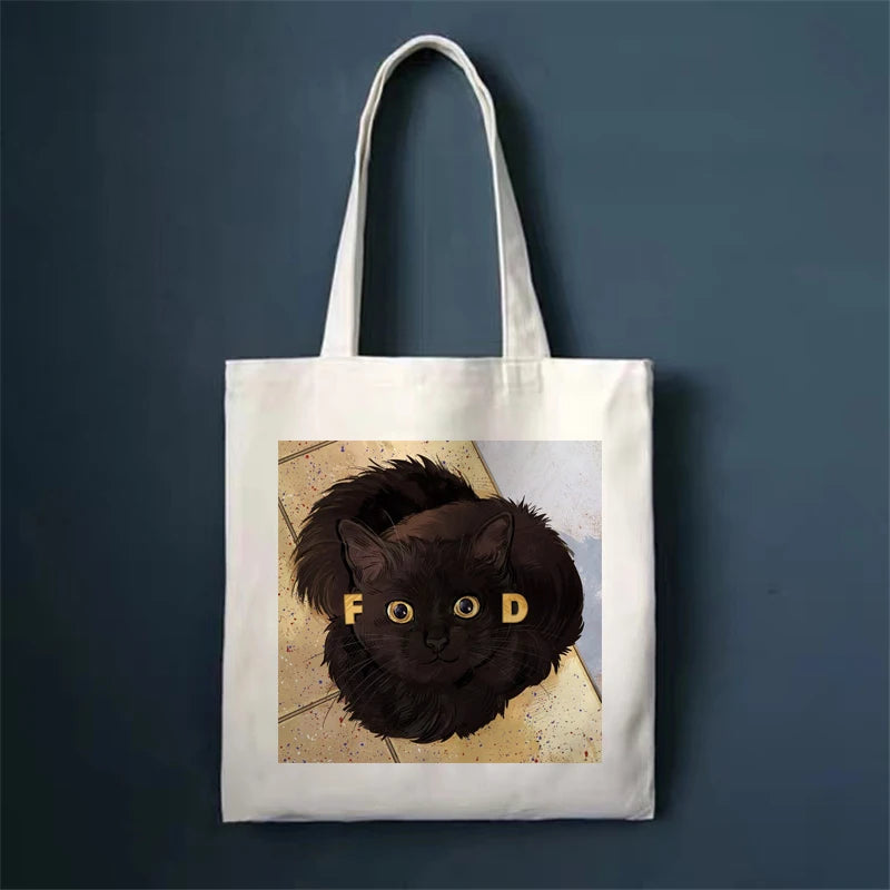 This shopper bag features a funny cat print design, ideal for cat lovers. It is made of durable canvas material with a high capacity for all your shopping needs.