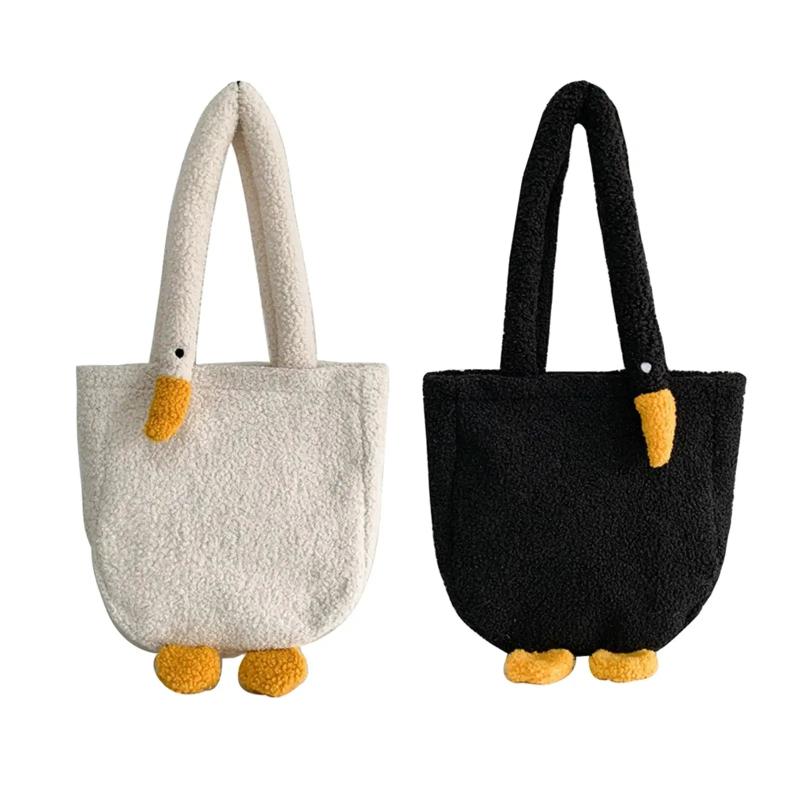 This funny plush handbag features a cute goose design, perfect for daughters, parties, and shopping. The bag is soft and offers a large capacity for all your essentials.
