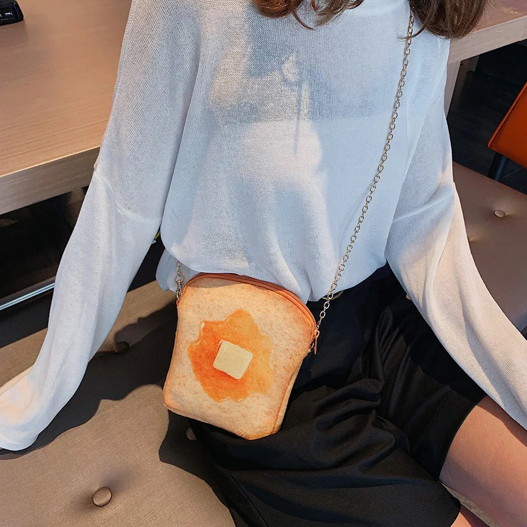 This unique and humorous bag features a small bread pattern, adding a touch of personality to your outfit. The perfect accessory for those who appreciate quirky style.