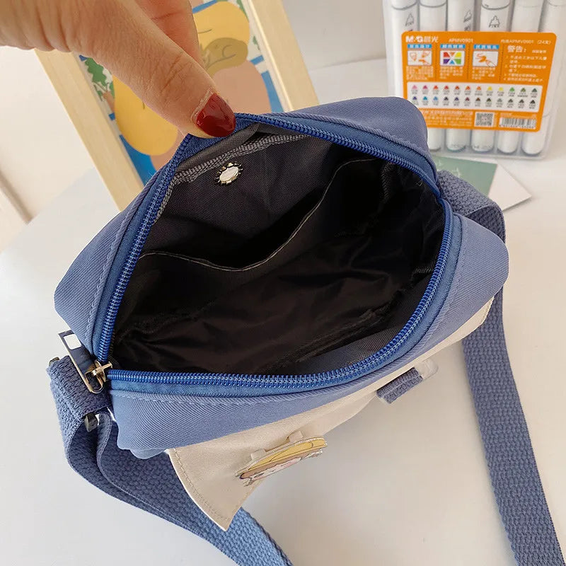 Stay stylish with this small canvas shoulder bag featuring a cute fur ball pendant. Great for shopping or casual outings.