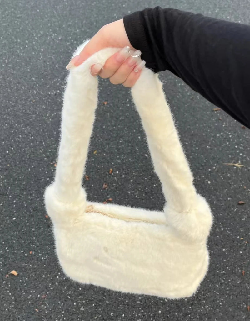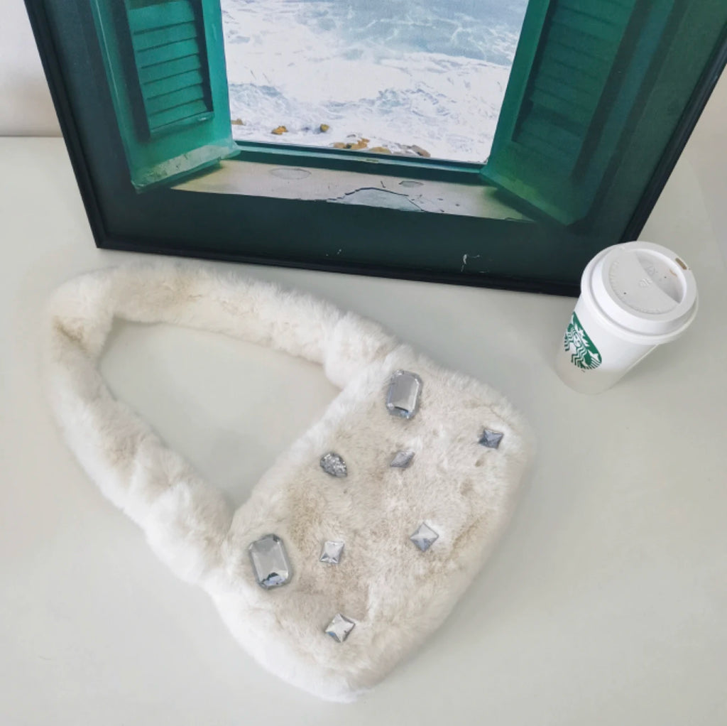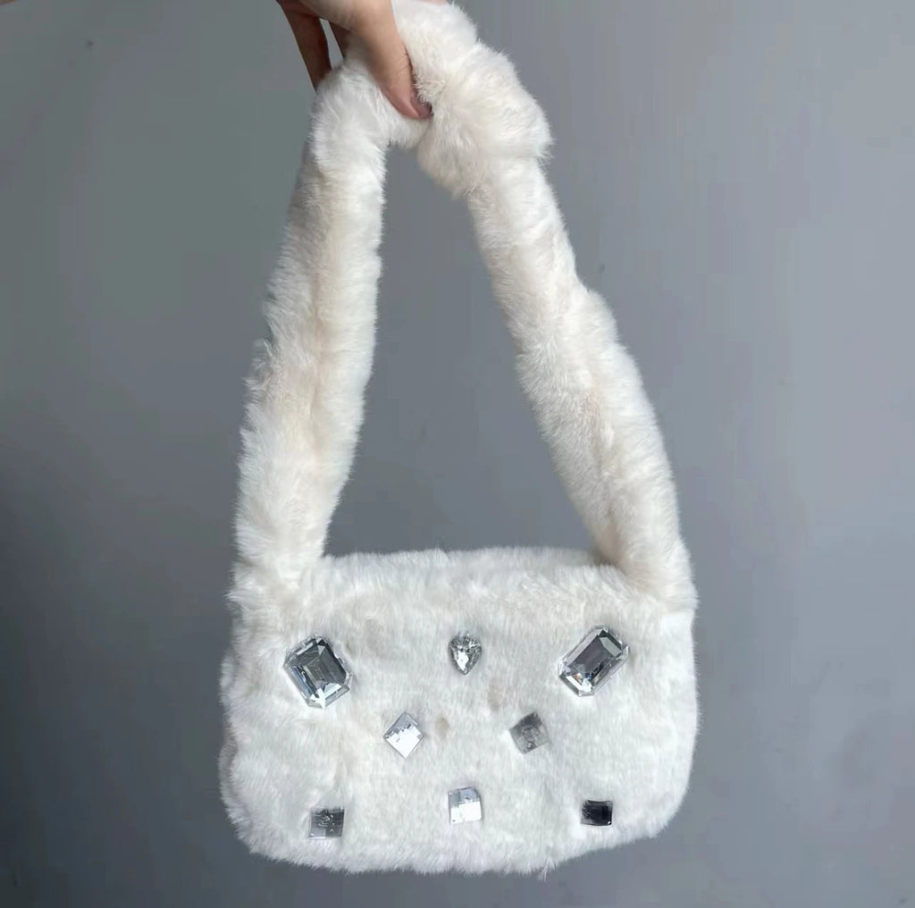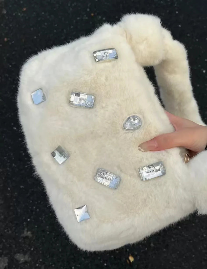 Furry Gemstone Decorated Handbag Soft Shoulder Bags Y2k Style